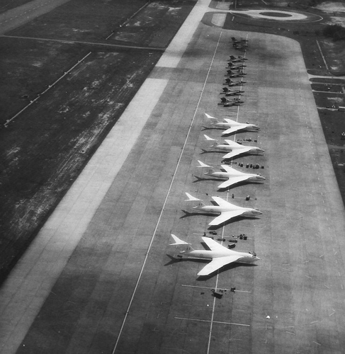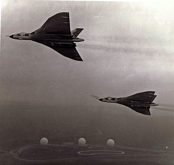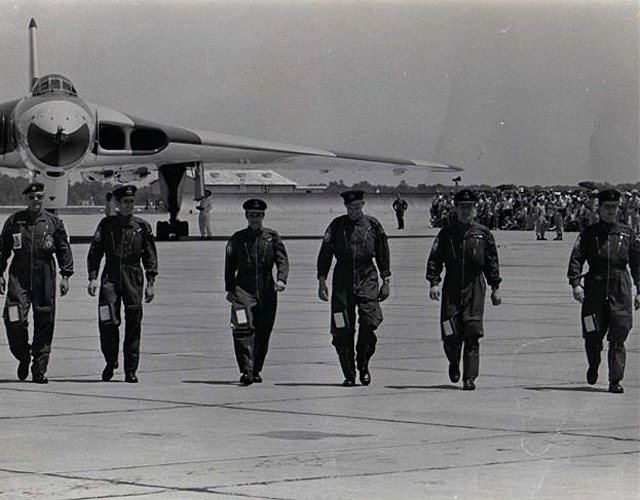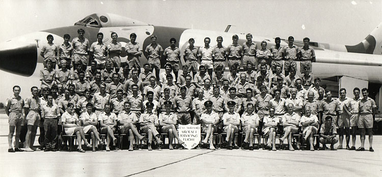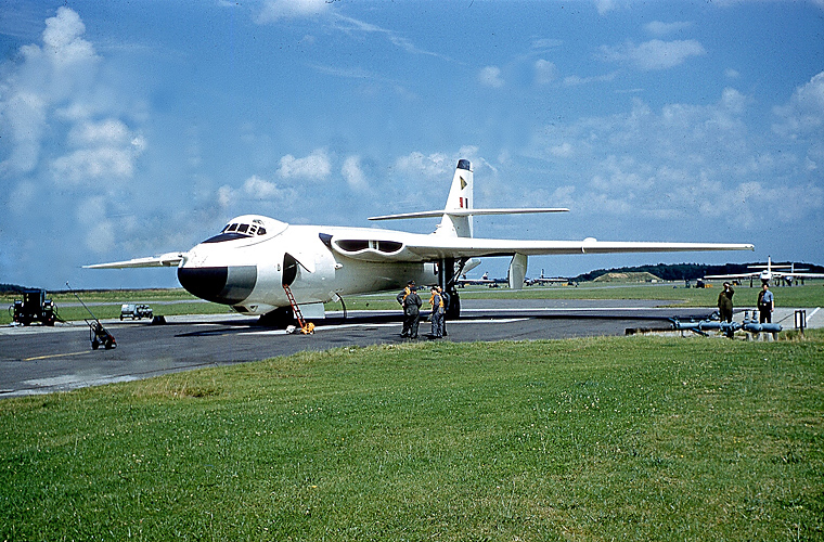 A Victor refueling a Belfast [Keith Bichard] A Victor refueling a Belfast [Keith Bichard] A rare photo of the 3 Vs. I believe there was no photo opportunity other than this one on 14 Sept 57 which I proposed when we were about to launch out of Boscombe Down  for Battle of Britain flypasts of significant bases. I had OC flying, Gp Capt Goodman, in the right seat of the Vulcan. The camera was with the rear seater in a Meteor 7. We were airborne for 4hrs 40. [Milt Cottee] XM651 at Barksdale AFB on 1/2 May 1971 after display for their 'At Home' day. Crew (unrecognizable!) L to R :- C/T Martyn (ASC), F/O Roy Bulley (AEO), F/L John Turner (Nav/plot), S/L 'Andy' Capp (Nav/rad), F/L Bob Peele (Co), F/L Bill MacGillivray (Capt.) [William MacGillivray] Ground crew. RAF Akrotiri. May 1971