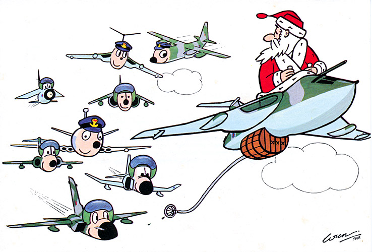 Crew of XH651, Akrotiri.  L to R front, Dick Lumb, Dicky Hyde and Chris Wren [Chris Wren] 214 Sqn with the Red Arrows in background [Chris Wren] Flt Lt Dick Lumb, Dec 6th 1972 in XH651 of 57 Sqn [Chris Wren] RAF Benevolent Fund Christmas Card, 1983[Chris Wren] Sqn 'Top Tanker Crew' taken at RAF Waddington in 1973 [Bob Tuxford]